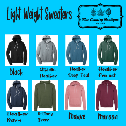 If you would like this shirt in a different style (tank, T-Shirt, V-Neck, etc) please message us and we can custom make it for you! sales@bluecountryboutique.com